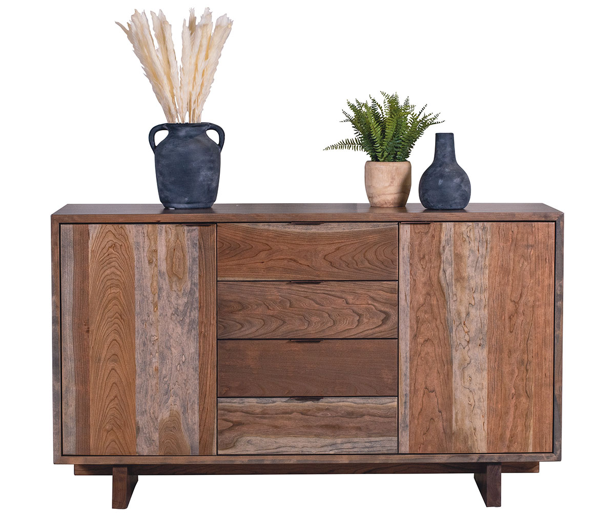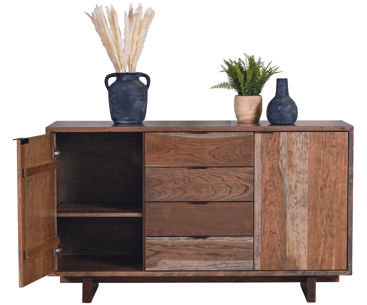 Features • Mitered corner detail • Dovetailed drawers • Full extension side-mount drawer slides • One adjustable shelf behind each door