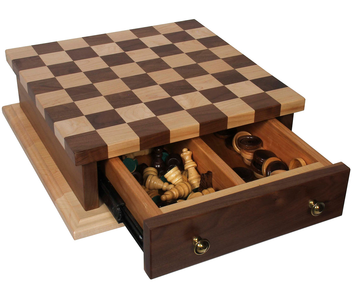 Features: • Wooden chess and checker pieces are included • Game pieces can store inside