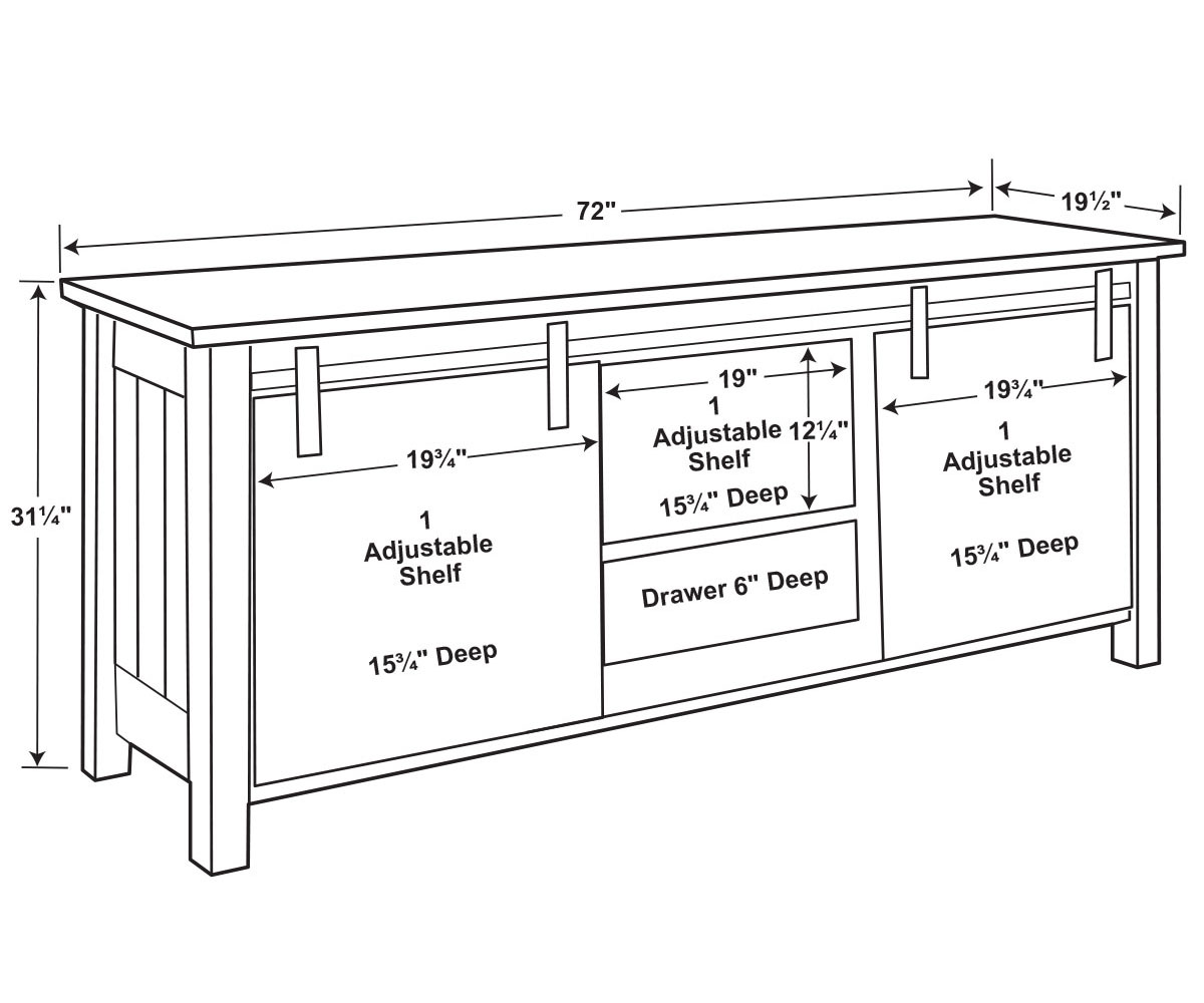 Dimensions: 72″W x 19½”D x 31¼”H