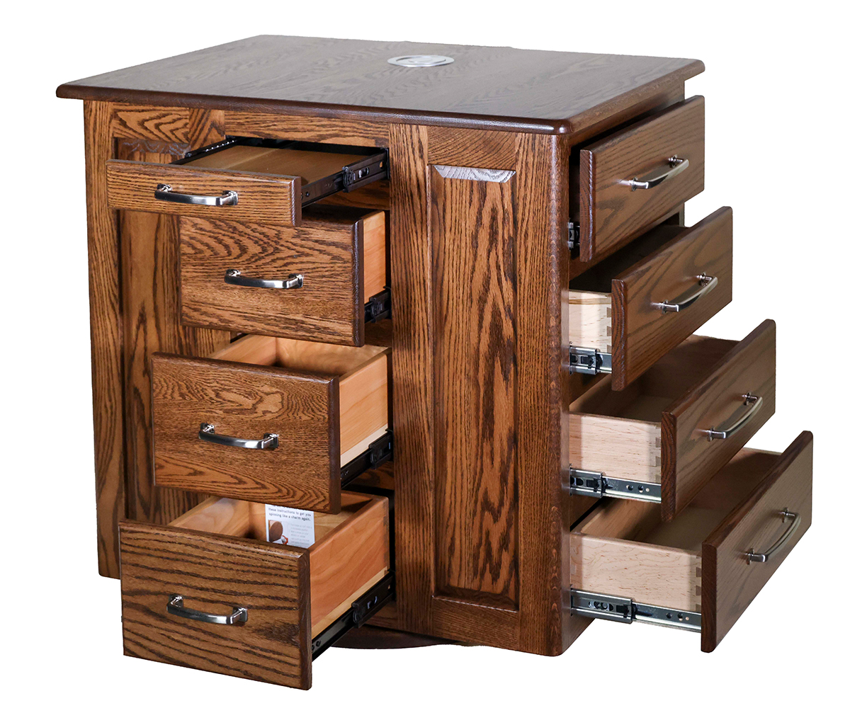 Features: • Dovetailed drawers • Magazine racks • Tissue holder • Pull out trash bin