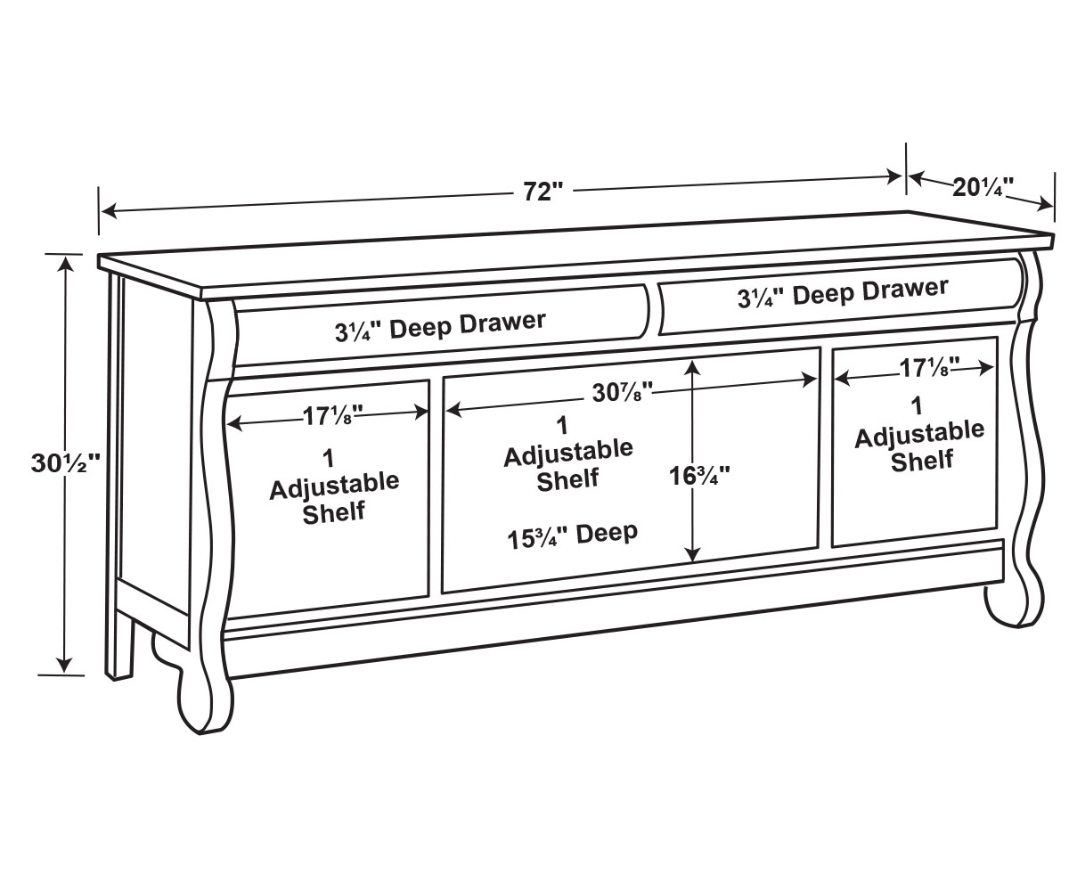 Dimensions: 72″W x 20¼”D x 30½”H