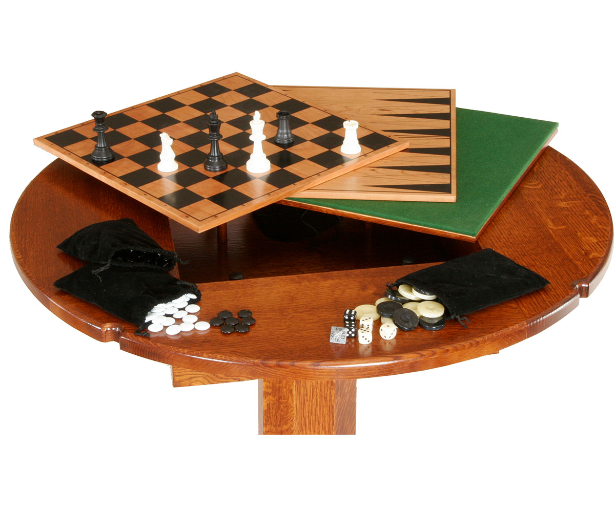 Features: • Checkers, chess, backgammon and go aggravation boards included • Reversible wood/felt top included • Tournament quality game pieces are included